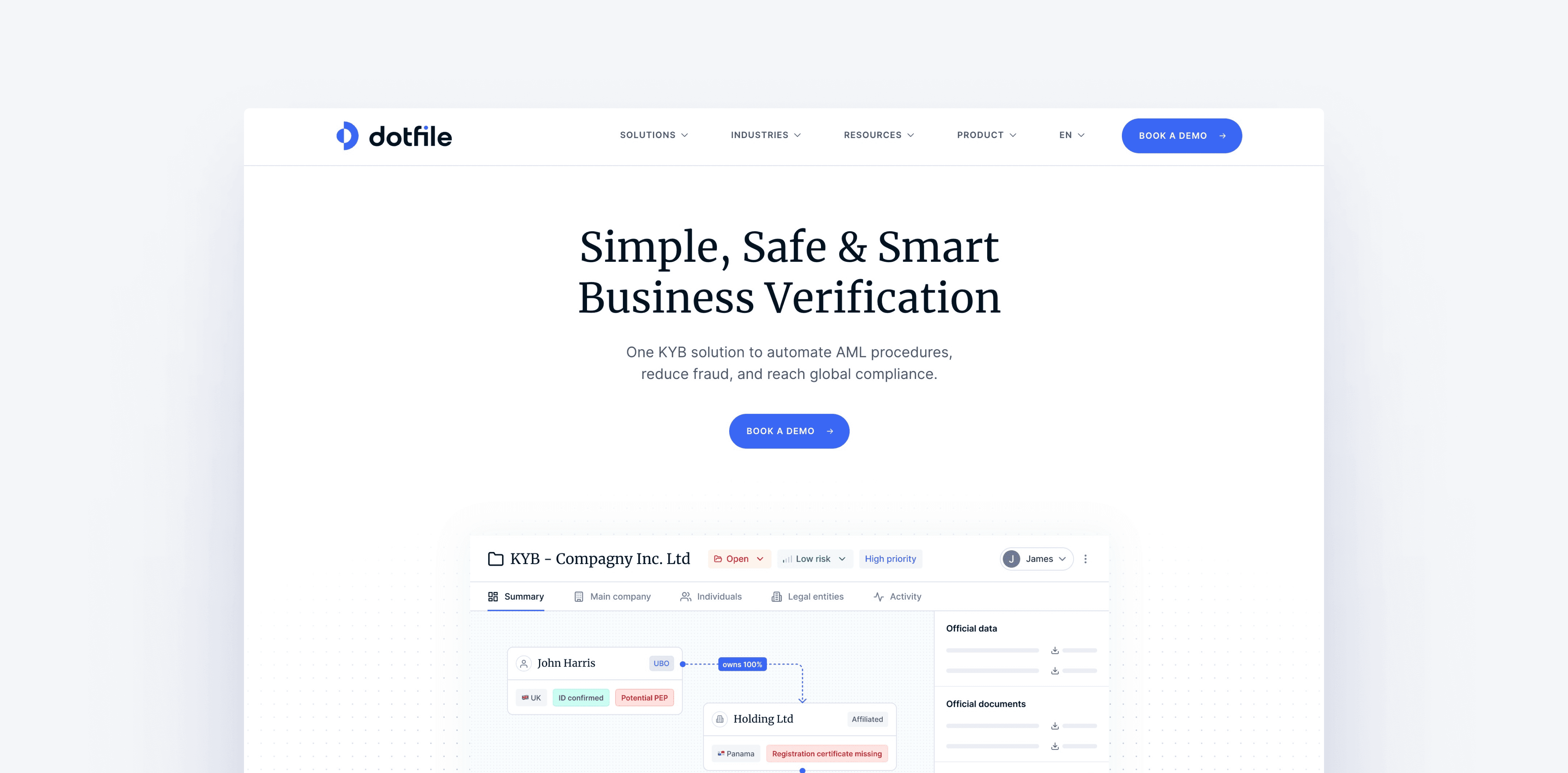 Dotfile, a B2B SaaS start-up focused on compliance in business verification, aimed to enhance its website to attract specific clients and accelerate growth.